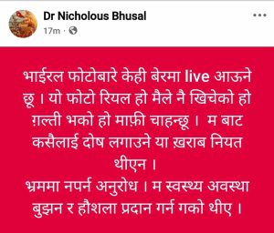रवि हिरासतमा सुतिरहेको फोटो डा. भुषालले फेसबुक आइडीबाट सार्वजनिक भएको थियो । निकोलसले फोटो आफूले खिचेको स्वीकार समेत गरिसकेका फेसबुकमा लेखेका छन्।